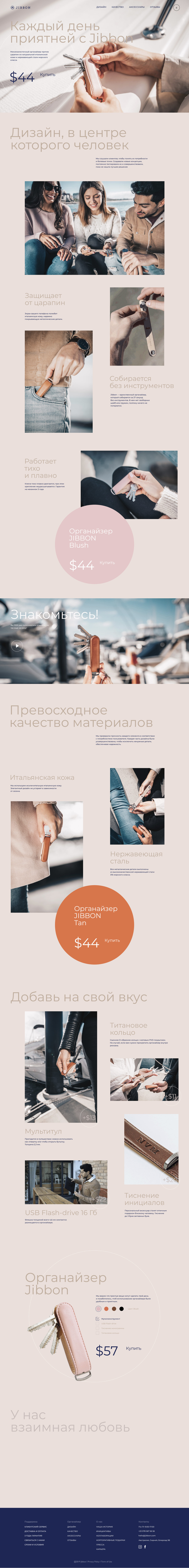 Jibbon is a startup on Kickstarter that has released the world's best Italian leather key organizer. To convey the idea of maximum design thoughtfulness, I made a minimalistic web design in pastel soft colors with an emphasis on the product. Round buttons with a thin white outline emphasize the idea of human-centered design.