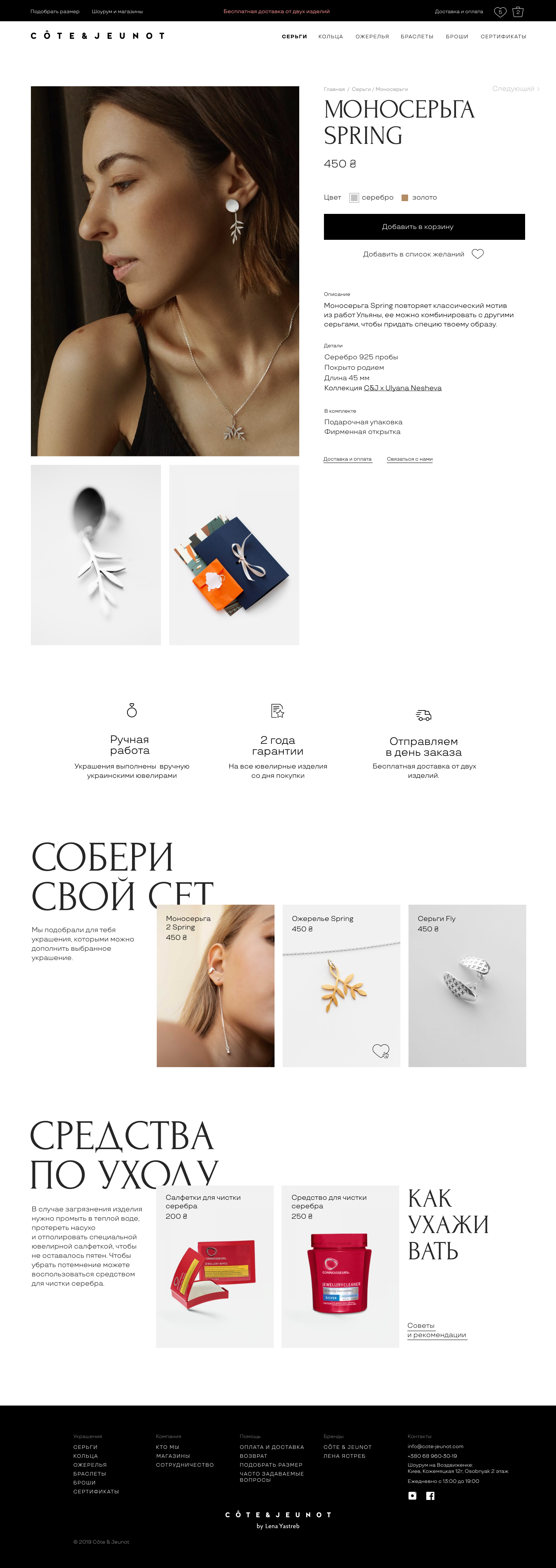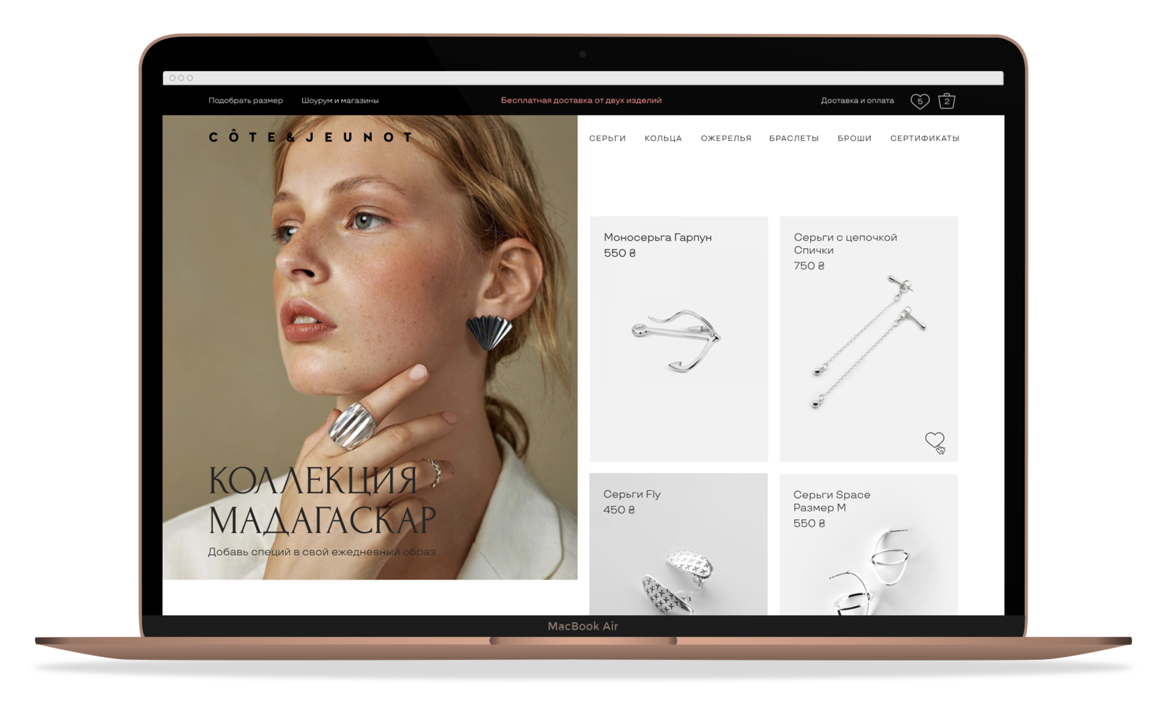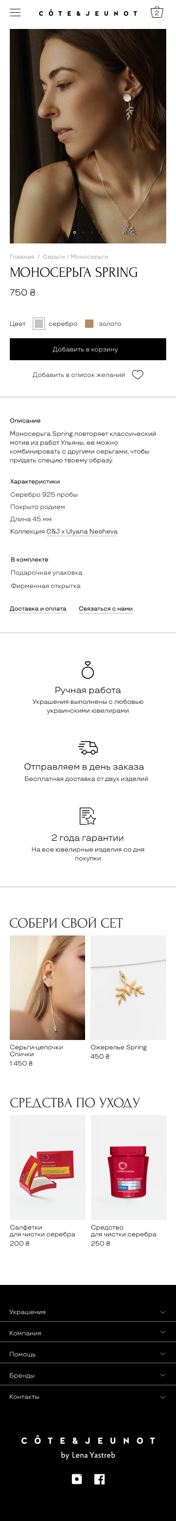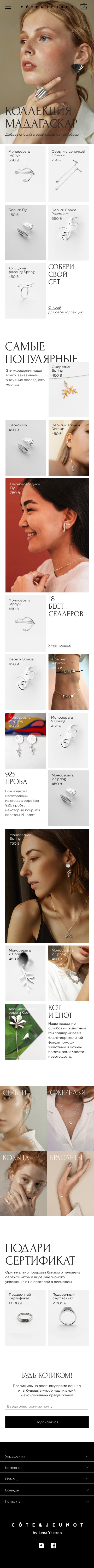Cote & Jeunot ukrainian jewelry allows you to express the whole variety of feelings, avoiding platitudes. Ideal for a period of life when you want to have something special, not boring and at the same time affordable in price. The main idea is to make the home page more functional and to immediately introduce customer/web page visitors to the brand and assortment.